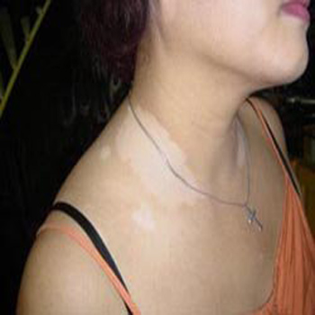 其次局限型白癜風(fēng)患者的皮損為局部色素脫失,白斑呈乳白色,其內(nèi)毛發(fā)可變白或正常,但皮膚無其它變化,亦無自覺癥狀.由于缺乏色素的保護(hù)作用,曝曬后可引起灼痛,紅斑及水皰.白斑的數(shù)目不定,可局限于身體某部或分布在某一神經(jīng)節(jié)段(或皮節(jié)),而很少變化或自行消失,但是多數(shù)病例往往逐漸增多,擴(kuò)大,甚至可泛發(fā)全身.色素脫失的程度因人而異,因部位而異,也可因脫色程度不同而顯示白、灰白、近正常膚色.