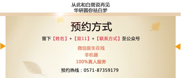 發(fā)送"姓名+雙11+聯(lián)系方式"至杭州華研白癜風(fēng)病專科醫(yī)院官方訂閱號在線報名,留言成功以后會有客服與您聯(lián)系.
