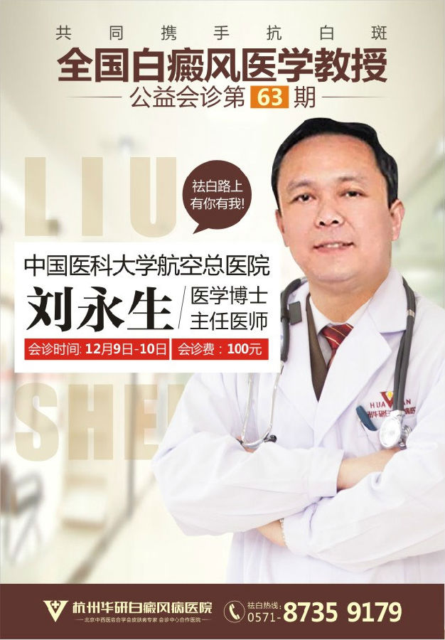為了響應(yīng)醫(yī)改新政與第十三屆皮膚科醫(yī)師年會宗旨,實現(xiàn)整合優(yōu)質(zhì)醫(yī)療資源,讓患者享受到與國際同步的技術(shù)醫(yī)療服務(wù),杭州華研白癜風(fēng)病醫(yī)院特此開展全國白癜風(fēng)醫(yī)學(xué)教授公益會診【第63期】活動,特邀中國醫(yī)科大學(xué)航空總醫(yī)院醫(yī)學(xué)博士劉永生于12月9日—10日聯(lián)合院內(nèi)專家會診。為患者定制診療、診療、有效的個體化診療方案,避免一些醫(yī)師經(jīng)驗不足,而導(dǎo)致出現(xiàn)的誤診、漏診、誤治。切實地解決老百姓看病難,看名醫(yī)難的問題。