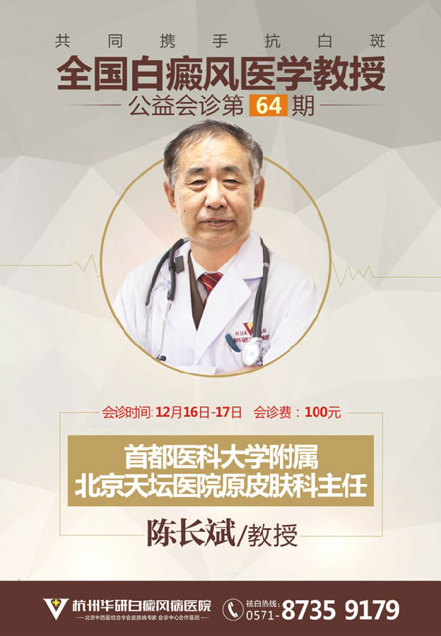 “號難掛、醫(yī)難求、費用高”成為尋醫(yī)問藥時的“三座大山”。為了響應醫(yī)改新政,切實服務群眾“解難題、辦實事、惠民生”,給華東地區(qū)群眾鋪就一條“健康路”,助推我國健康扶貧工程的發(fā)展,杭州華研白癜風病醫(yī)院將積極開展了全民免費檢查、診療報銷、醫(yī)療援助等等一系列扎扎實實的醫(yī)療惠民舉措,此次全國白癜風醫(yī)學教授公益會診【第64期】活動,更是特邀請首都醫(yī)科大學附屬北京天壇醫(yī)院陳長斌教授蒞臨醫(yī)院聯(lián)合會診,讓廣大白癜風患者輕松診療疾病,早日恢復皮膚健康。