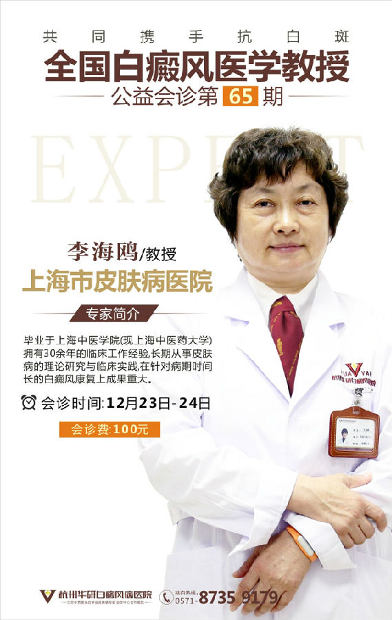 白皙、嬌嫩的皮膚幾乎是所有女性夢(mèng)寐以求的,但如果不小心被白癜風(fēng)“看中”了,再美的容顏也會(huì)因白癜風(fēng)的存在而大降魅力。為切實(shí)向患者提供科學(xué)規(guī)范化的診療,幫助廣大的白癜風(fēng)患者解除白斑困擾,樹(shù)立診療信心,杭州華研白癜風(fēng)病醫(yī)院特此開(kāi)展全國(guó)白癜風(fēng)醫(yī)學(xué)教授公益會(huì)診【第65期】活動(dòng),特邀上海市皮膚病醫(yī)院白癜風(fēng)專家李海鷗于12月23日—24日聯(lián)合院內(nèi)專家會(huì)診,讓廣大白癜風(fēng)患者輕松診療疾病,早日恢復(fù)皮膚健康。