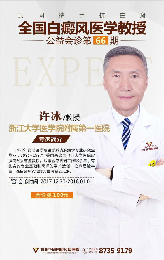 歲末來臨,本來要歡歡喜喜迎新年,可白白們還備受疾病困擾,承受著身心壓力。為了響應(yīng)醫(yī)改新政,切實服務(wù)群眾“解難題、辦實事、惠民生”,給華東地區(qū)群眾鋪就一條“健康路”,應(yīng)廣大白癜風(fēng)患者的強烈要求,在2018年元旦來臨之際,杭州華研白癜風(fēng)病醫(yī)院特此開展全國白癜風(fēng)醫(yī)學(xué)教授公益會診【第66期】活動,特邀浙江大學(xué)醫(yī)學(xué)院附屬醫(yī)院許冰教授于元旦假期(2017.12.30—2018.01.01)聯(lián)合院內(nèi)專家會診,助力患者在新年來臨之際給白斑做個“大掃除”,以更新更好的姿態(tài)迎接新的一年。